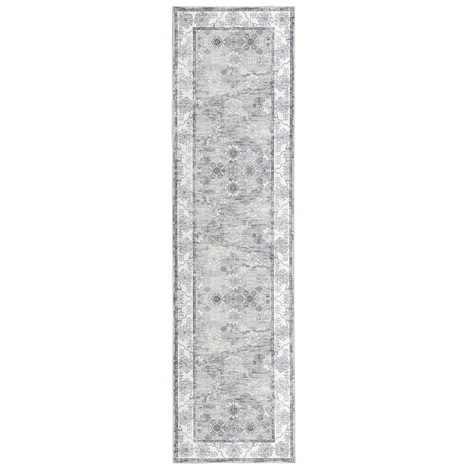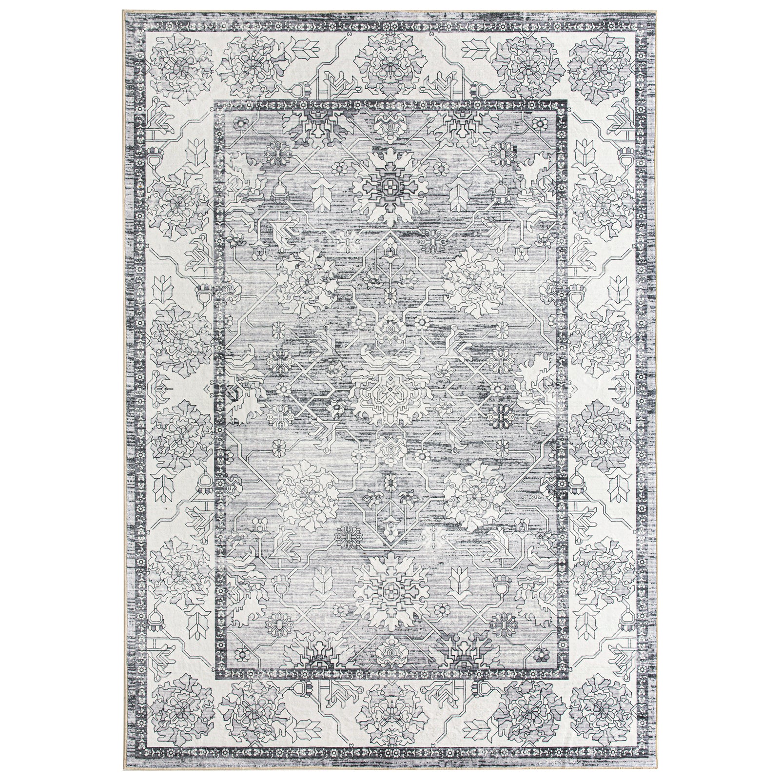 Extra Large Rug Silver Grey Neutral Distressed Lounges Carpet Runner Mat Machine Washable 240x340cm